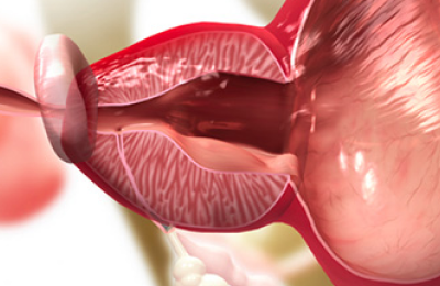 요도를 통해 내시경으로 전립선 요도부에 접근합니다. 아이틴드 장치를 정확한 위치에 삽입합니다.