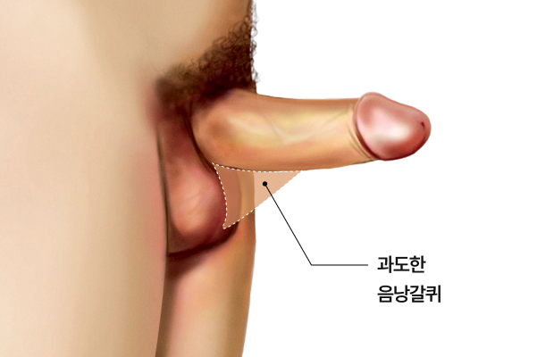 이 경우에는 외형상 길이가 짧아 보이거나 발기 시 당겨지는 느낌이 나타날 수 있습니다.