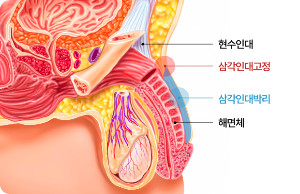 음경 기저부를 지지하는 윤상인대를 일부 조정하여 묻혀 있는 길이를 외부로 유도하는 수술입니다. 과도한 절제가 아닌 해부학적 범위 내에서 진행하며, 외부 노출을 유지할 수 있도록 고정이 중요합니다. 지지 구조의 안정성이 수술 결과에 큰 영향을 줍니다.