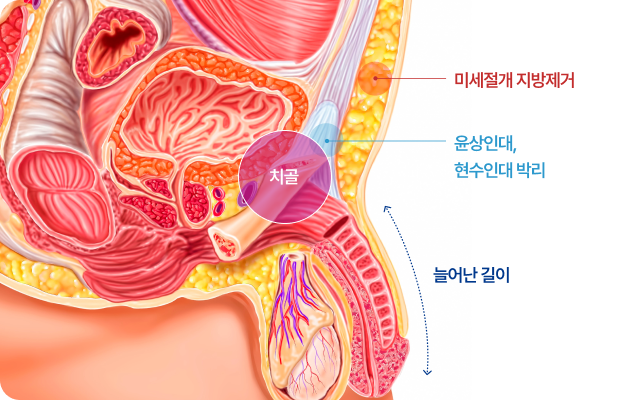 미세한 절개를 통해 음경을 지지하고 있는 인대 일부를 조정하여