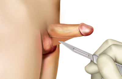 하지만 일부에서는 피부가 위쪽까지 당겨 올라와 음경 하부를 덮는 구조를 형성합니다.