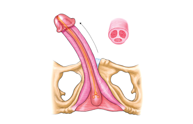 선천성 만곡증은 음경 해면체 길이의 불균형으로 발생합니다.